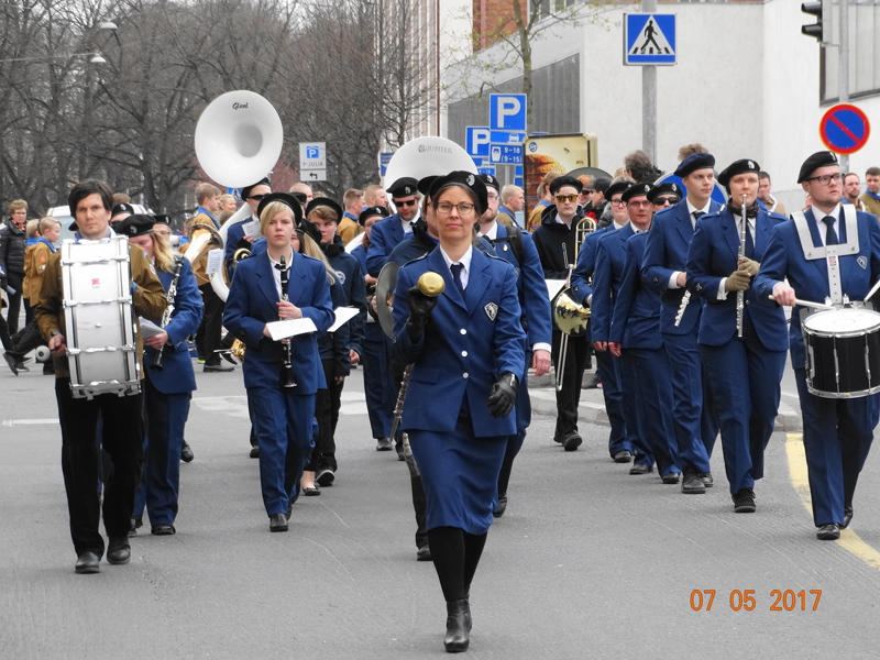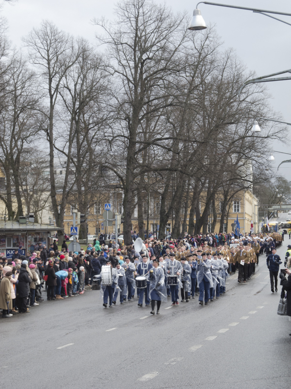 Soittokunta siirtyy Tuomiokirkon portailta fanfaarien soitannan jälkeen Ohimarssipaikalle, jossa soitamme koko paraatin ajan.