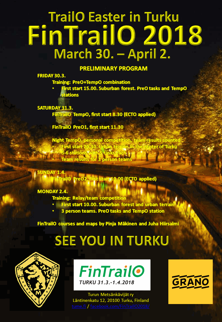 28.3.2018 Kilpailuohje kaikiin kolmeen FintrailO 2018 kilpailuun, TempO (WRE, ECTO) +