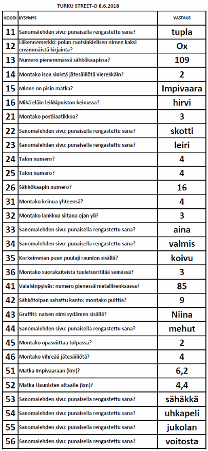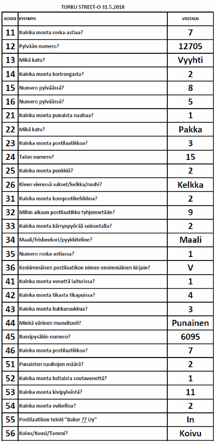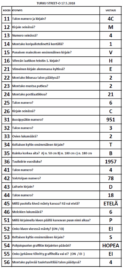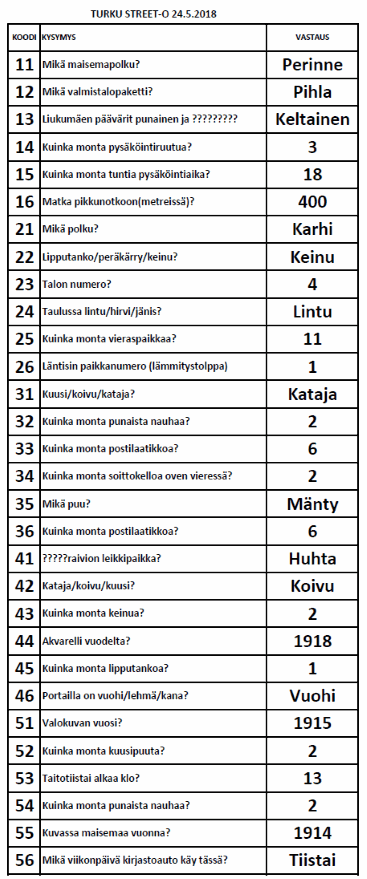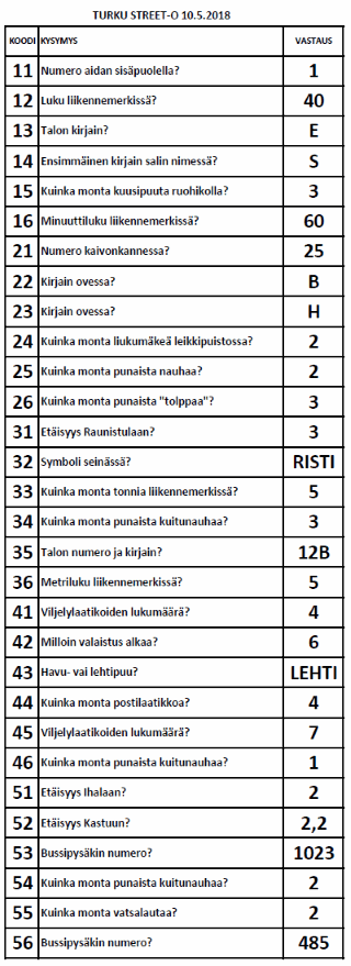 | Turku Street-O Kevätsarja 2018 tulokset |