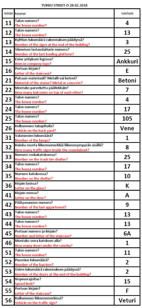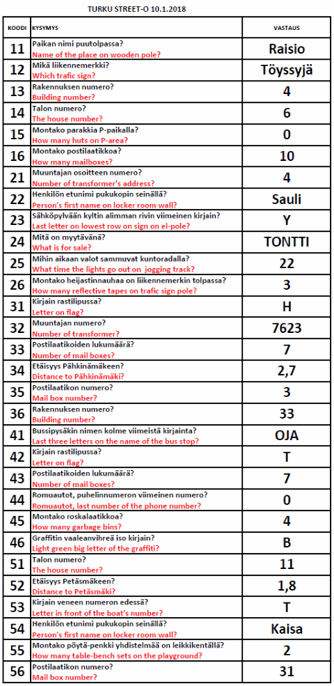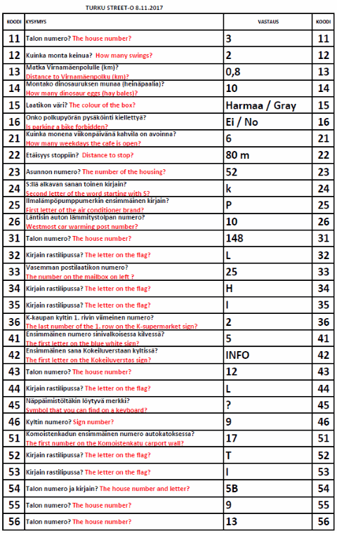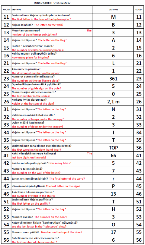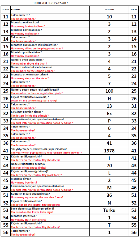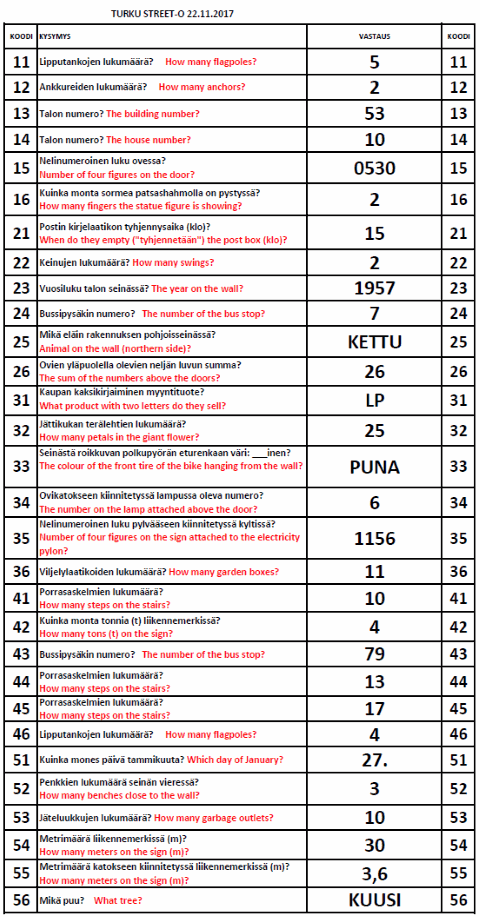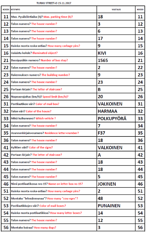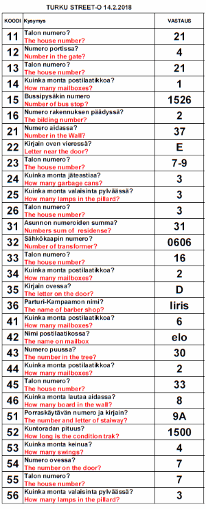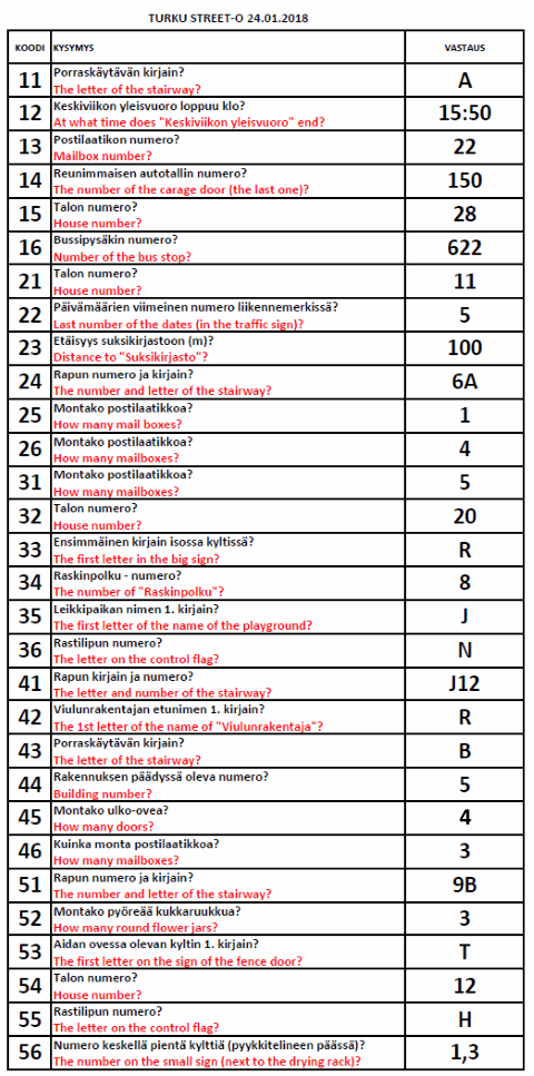 Turku Street-O 2017 - 2018 tulokset
