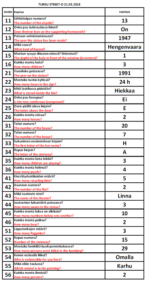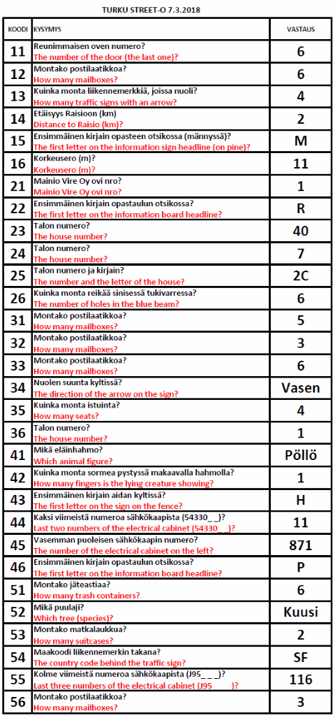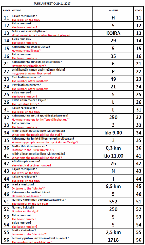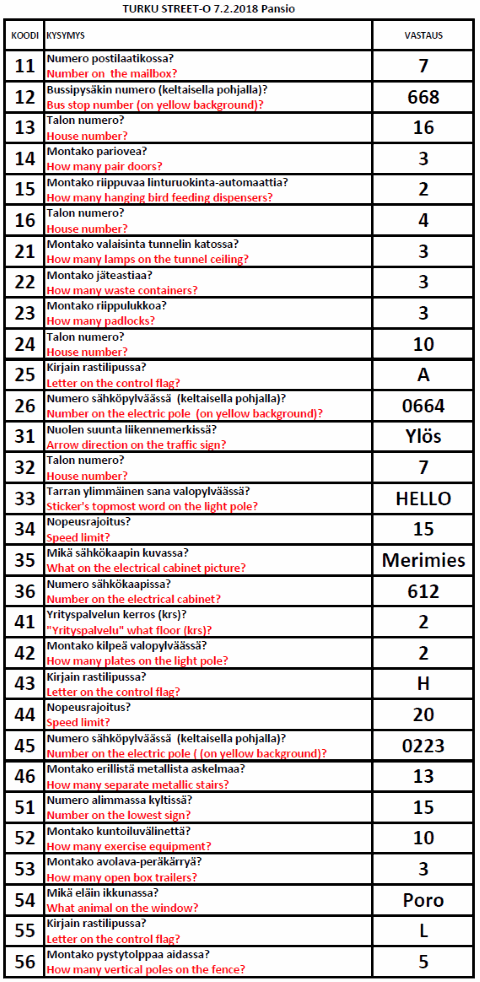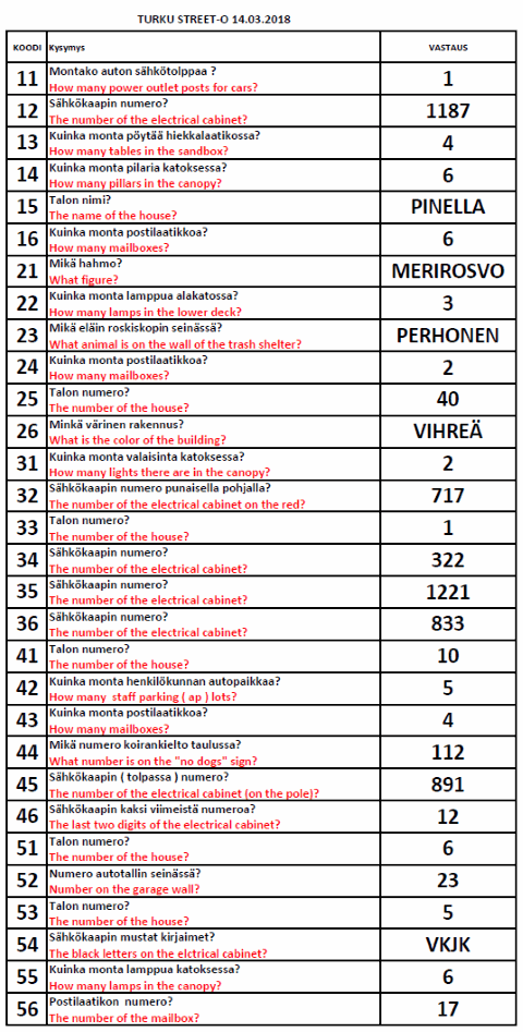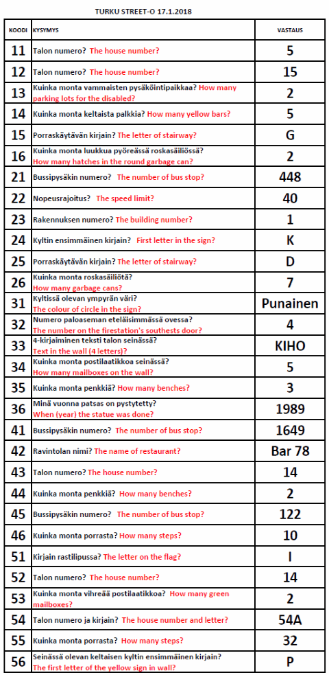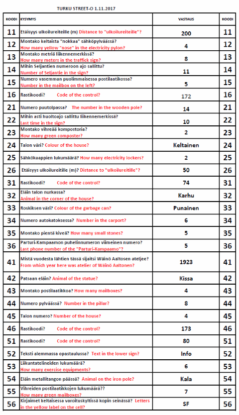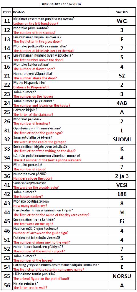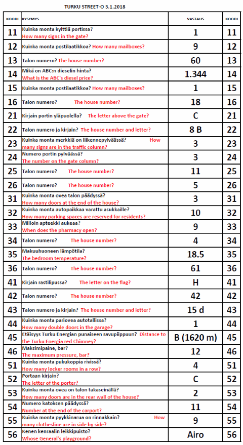 Turku Street-O 2017 - 2018 tulokset